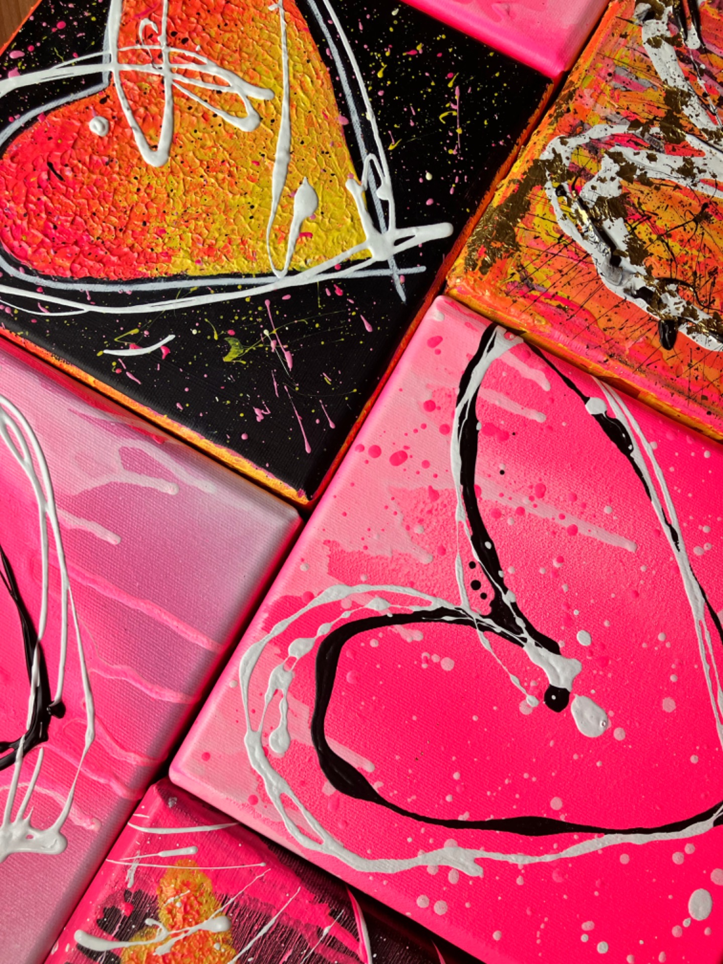 Nejčastěji maluji květiny, mandaly a obrazy plné pestrých barev, které zútulňují domovy a vnášejí do nich klid a harmonii. Ale moje druhé, divočejší já občas sáhne po sprejích, fixech a neonových barvách, tehdy vznikají spontánní, energické obrazy plné emocí a barevného výbuchu. A právě ta svoboda tvořit různými způsoby mě na umění tolik baví.